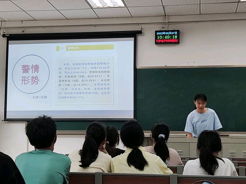 志愿队定期深入寝室开展同学喜闻乐见的活动。志愿队从安装国家反诈中心APP、注册“金钟罩”小程序等入手督促同学们全员安装并注册使用,防患于未然;根据警示案例编排了的情景剧,生动形象地再现被骗场景,同学们通过情景剧的分享,纷纷表示活动不仅有意思,还非常有教育意义,今后一定牢记各类诈骗手段,不贪图小利,遇事多和老师同学交流,不给不法分子诈骗的机会。