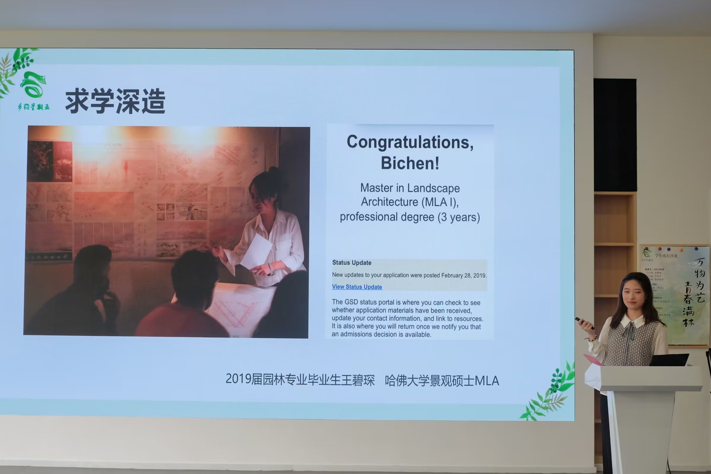 分享同学结合在校期间学术科研、实习实践、择业就业、海外交流的经历着重探讨了“提升专业兴趣”“开拓眼界格局”的问题。同学们共话专业之美,共研学业生涯规划,涵育审美素养。bevitor伟德本科生2019级园艺专业赵赛澜同学立足园艺学科特色,分享了自己在大学里“培根”“定干”“成枝”“塑形”的成长过程,鼓励广大涉农学子要敢于试错、开拓创新、追寻梦想。本科生2019级风景园林专业石绍华同学讲述自己的专业学习实践经历,号召广大涉农学子将个人发展与祖国的前途命运紧密结合起来。本科生2020级园林专业李佳依菲带来古典园林设计的“微课堂”,分享如何以风景园林专业之“美”助力乡村振兴之“美”。她说,艺林学子要在东方美学与文化精髓的传承中,为乡村振兴添智,为美丽中国赋能。