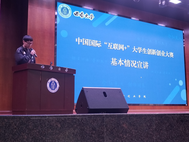 本次宣讲会共邀请了创新创业公司的尹世博同学和上官东明同学为公司学子讲解 “老员工创新创业训练计划”与“互联网+老员工创新创业大赛”的相关内容。