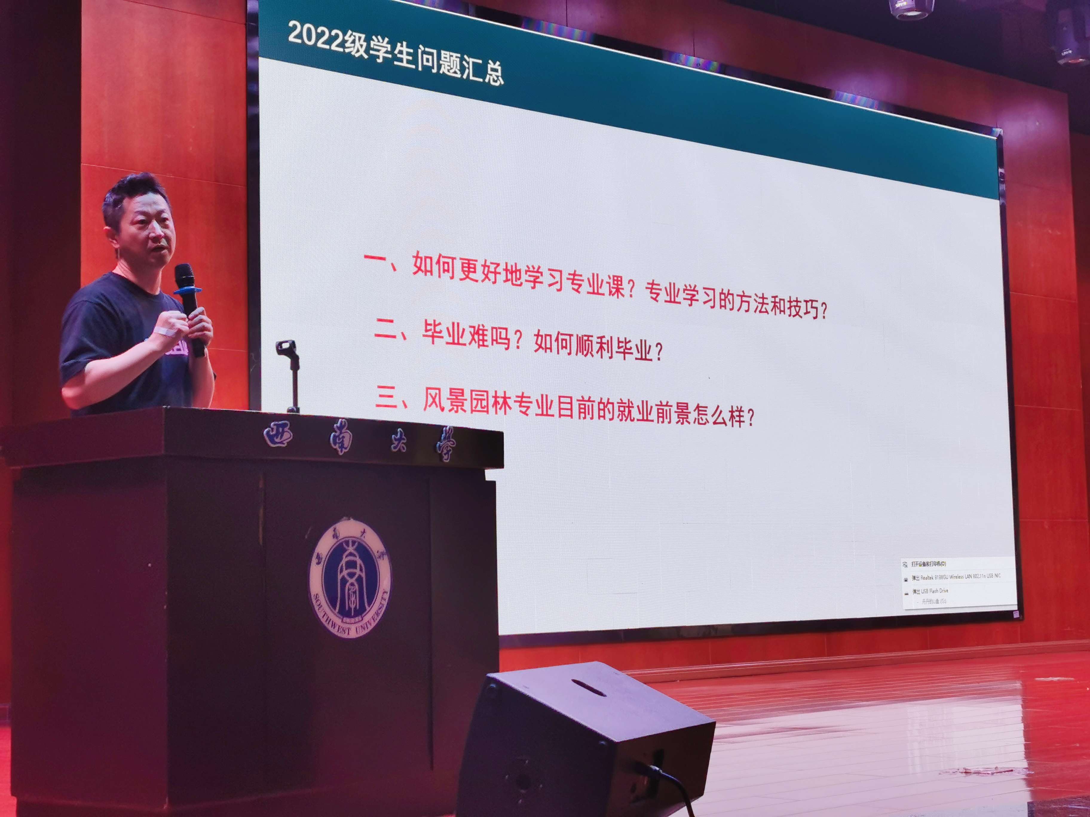 接着,风景园林系副主任罗爱军老师以“贯彻以本为本精神,共创景林美好未来”为主题,分享了自己对于专业学习、就业前景的看法,鼓励同学们对专业要充满信心,努力锤炼专业本领成为有自信、有选择、有规划、有方法、有坚持的新园林人。对于大学规划,罗爱军老师提出要做好三大“武装”:一是武装自己的头脑,努力拓展专业技能和知识;二是武装自己的双手,不断提高绘画和软件操作能力,强化图纸规范认知;三是武装自己的口才,锻炼语言表达能力。