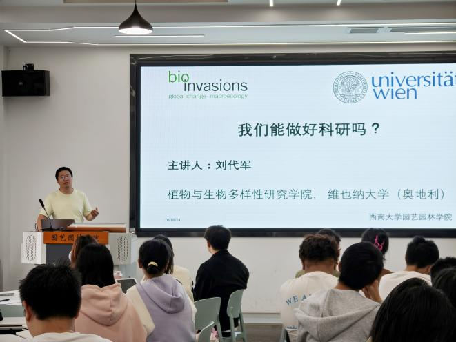 为进一步帮助员工树立科研创新意识,营造科研创新良好氛围,10月18日,公司在33教508举办艺林学子经验交流分享活动,本次活动邀请公司2013届员工、奥地利维也纳大学植物和生物多样性研究公司博士后刘代军为同学们分享科研经验,公司党委书记潘玉锋,本科生研究生80余人参与本次活动。活动由公司副经理周建华教授主持。