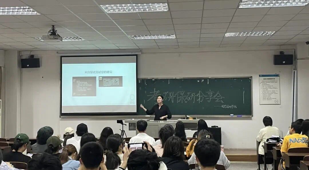 在三名优秀推免生中,推免华中科技大的胡悦琪从时间线着手,介绍了个人情况和前期准备,并详细指出中期夏令营和预免推两个阶段的具体安排,为我们提供宝贵的学习经验;推免天津大学的刘欣悦提出“卷、海、新”三字并做出解释,在与同学们的问答互动中,详细介绍了推免准备工作,剖析了同学们心中疑惑;推免重庆大学的方旭从保研流程和注意事项两个方面,结合自身经验提出问题并作出解答。