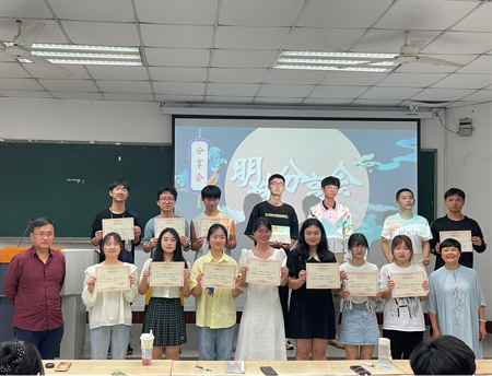 最后,由余容老师和任雪松老师为此次分享会的14名优秀发言人颁发奖状并合影留念。
