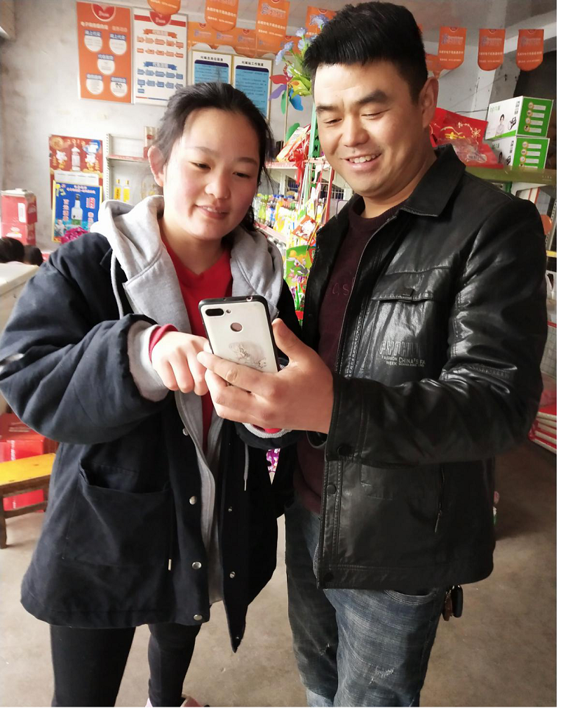 (图为她指导村民下载使用“学习强国”APP)