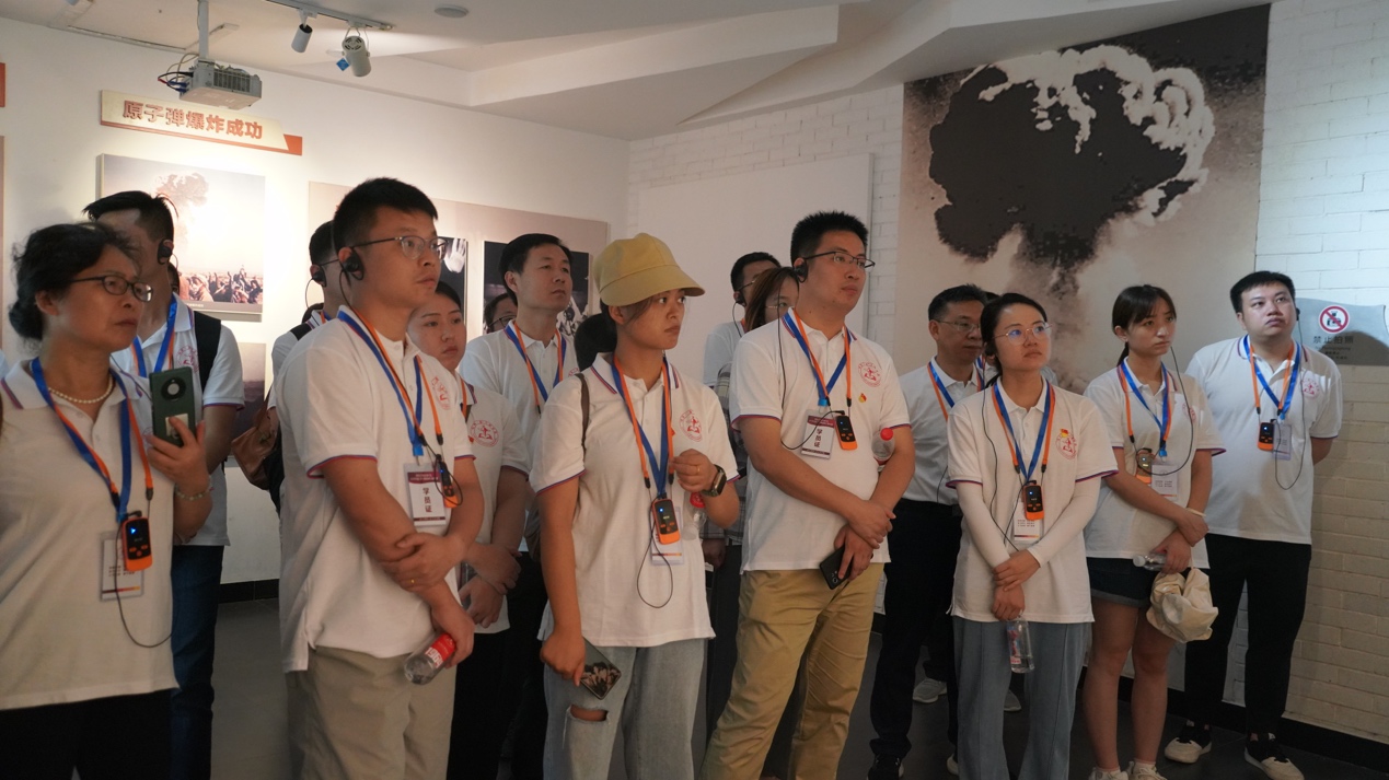 6日上午,现场教学环节,全体学员实地参观了两弹历程馆、邓稼先旧居、廉政教育家风馆、三防教育馆等展馆。期间,学员们瞻仰了“两弹一星”功勋邓稼先旧居,向邓稼先铜像敬献花篮,深切缅怀老一辈科学家,重温入党誓词。随后,现场学习了关于王淦昌、邓稼先、彭桓武、钱学森、王大珩家风的《忠厚传家久 诗书继世长》主题微党课。下午,学员们聆听了中物院原副经理尚林盛、两弹结合试验亲历者赵符修的《不忘初心跟党走 “两弹一星”铸国魂——“我们那些年”》现场访谈教学,观看情景教学《记忆里的“两弹一星”》,培训班成员了解了我国核武器发展的峥嵘岁月和艰苦奋斗历程,深切感受“热爱祖国、无私奉献、自力更生、艰苦奋斗、大力协同、勇于登攀”的“两弹一星”精神,深刻感悟到老一辈科技工作者“干惊天动地事,做隐姓埋名人”的家国情怀,在追寻功勋足迹中,坚定理想信念,砥砺奋斗之志。