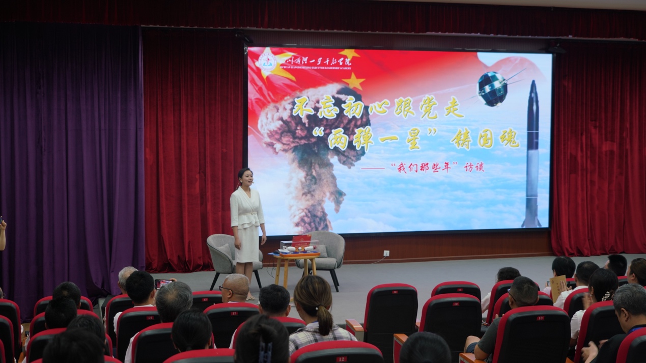 5日下午,开班式在“两弹一星”干部公司奋斗楼215室举行,公司经理宋洪元主持开班式。“两弹一星”干部公司副经理邓诚致辞,她对本次培训学员的到来表示欢迎,并介绍了本次培训采取专题教学、现场教学、访谈教学、情景教学等多种方式,紧扣“两弹一星”党史教育主题,突出“两弹一星”精神教育。公司党委书记潘玉锋表示,“两弹一星”精神是中华民族的宝贵精神财富,激励和鼓舞了几代人中国人,希望大家提高思想认识,珍惜学习机会。随后,四川省委党校哲学教研部主任、教授、硕士生导师李后卿为学员作《习近平新时代中国特色社会主义思想解读》专题授课,从习近平新时代中国特色社会主义思想的“源、知、行、果、思想精髓和灵魂、学习方法”等六个维度展开,着重对党的二十大精神做系统全面、清晰透彻的解读。