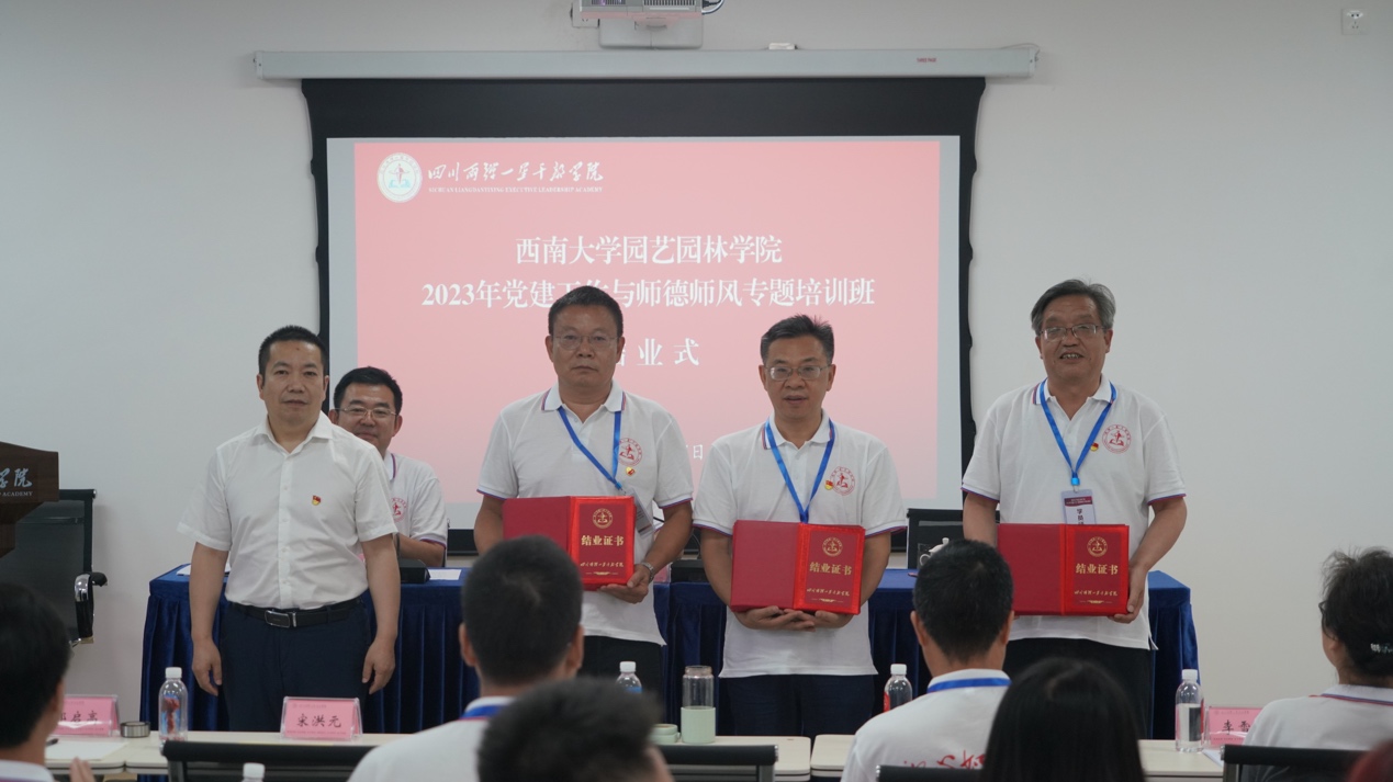 结业式上,“两弹一星”干部公司副经理梁朝元为培训班成员颁发了结业证书。公司党支部书记、辅导员吴超老师作为学员代表发言,他表示“两弹一星”精神蕴含着丰富的时代价值和现实意义,要在工作实际当中不断领悟,努力让“两弹一星”精神在新时代、新征程中发扬光大。宋洪元作培训总结,感谢四川两弹一星干部公司为本次培训所做的精心组织和周密安排,并寄语学员们要在学习贯彻习近平新时代中国特色社会主义思想中,在提升党务工作质量实效,加强师德师风教育建设中大力弘扬“两弹一星”精神,让更多的党员感受到“两弹一星”精神,感悟初心使命,激发爱国奋斗力量。