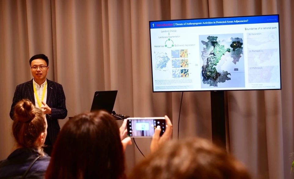 9月28日下午,杜文武副教授在“人民与政策的考量(Considering people and policy)”分论坛做了题为“How to Evaluate Anthropogenic Impacts on Protected Areas and Adjacencies(中译:自然保护地及其毗邻区人类活动影响评估)”的学术报告。该研究着眼我国建立完善国家公园体制的重大实践需求,聚焦自然保护地毗邻区多种典型人类活动对国家公园等自然保护地本体的影响,针对当前人类活动潜在风险认识和评估预警方法的不足,向国际同行分享了团队通过构建梯度模型来实现精细化评估的最新方法探索,探讨了该研究在未来国家公园空间治理优化方面的良好应用前景。本研究作为国家自然科学基金面上项目“自然保护地及其毗邻区景观梯度结构效应与协同机制”资助的重要研究成果,展示了团队近年来在我国国家公园与自然保护地体系建设中的持续努力和最新探索。