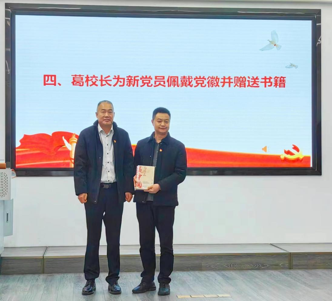 会上,支部隆重举行了2023年新发展党员入党宣誓仪式暨老党员重温入党誓词,葛信勇为新发展党员佩戴党员党徽并赠送书籍,李良进行了预备期半年思想汇报。