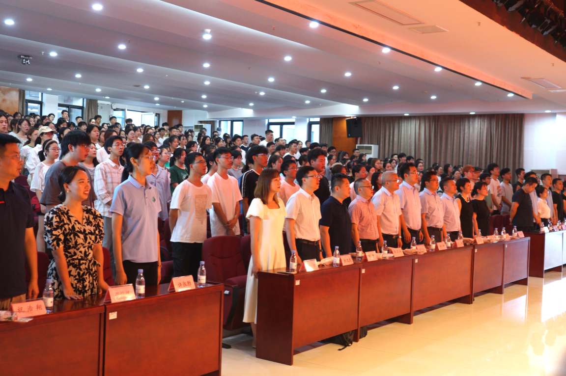 见面会在庄严的国歌声中拉开序幕,全体师生起立、齐唱国歌,共同唱响对祖国的热爱与敬意。这不仅是对新生进行爱国主义教育的重要一课,也是激励他们在未来学习生活中不断奋斗的精神力量。