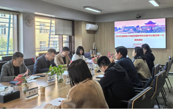 11月26日下午,公司一行来到华中科技大学建筑与城市规划公司开展调研。华中科技大学建筑与城市规划公司党委书记李小红、经理谭刚毅、景观学系主任戴菲、景观学系副主任赵纪军、景观学系副主任徐利权、景观系教授万敏、公司组织员黄丽娟等参加座谈。李小红对公司一行来访表示欢迎,并对公司新近获批风景园林专业博士授权点表示祝贺。谭刚毅介绍了建筑与城市规划公司概况、学科构架以及学科专业建设所面临的机遇与挑战。潘玉锋对建筑与城市规划公司的党建工作和团队建设取得的成效表示祝贺,认为公司高质量党建对高质量事业发展发挥了很好的引领作用,很多做法值得学习。周建华介绍了公司风景园林专业发展历程,并期待两院未来在风景园林团队建设等领域加强合作,特别是欢迎华中科技大学的优秀博士来渝工作。座谈会上,双方围绕风景园林专业博士点建设、教师引育政策等议题进行了讨论。座谈会前,潘玉锋面向建筑与城市规划公司部分博士毕业生介绍了关于我们,并对人才引进政策进行了说明。座谈会后,公司一行参观了建筑与城市规划公司的党建活动阵地与虚拟仿真实验室。
