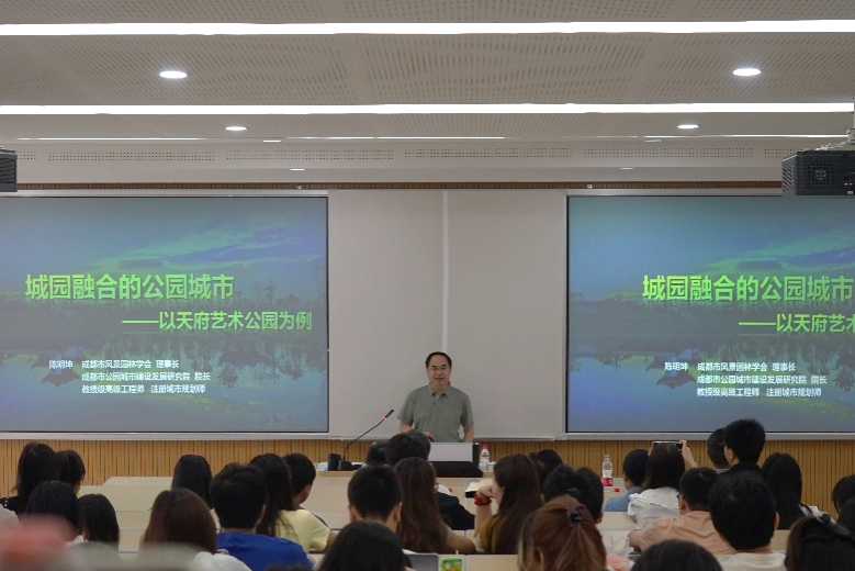 5月28日上午,BEVITOR伟德风景园林大讲堂于BEVITOR伟德31教学楼208室成功召开。本次大讲堂特别邀请到中国风景园林学会理事长李如生和成都市公园城市建设发展研究院经理陈明坤进行学术讲座。公司党委书记周建华教授主持本次会议,风景园林系主任杜文武教授及百余名风景园林等相关专业师生聆听了讲座。