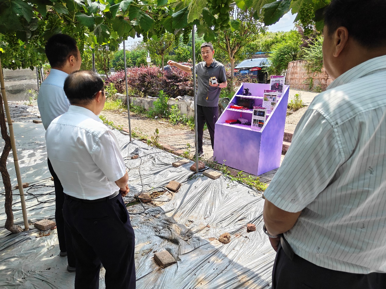 领导专家一行首先来到了阳光玫瑰避雨栽培大棚,科技小院依托单位重庆星期天农业科技有限公司总经理文婷婷介绍了公司与BEVITOR伟德产学研合作的历程。2021年通过重庆市科技特派员项目与BEVITOR伟德关心副教授、李明生副教授结识,共同提出通过激光技术、结合人工智能、机器视觉和基于深度信息的果穗识别图像处理等技术,解决全球葡萄产业栽培管理过程中修花果穗的瓶颈环节需求,2023年正式建成中国农技协重庆渝北葡萄科技小院,2024年研究生入驻科技小院。
