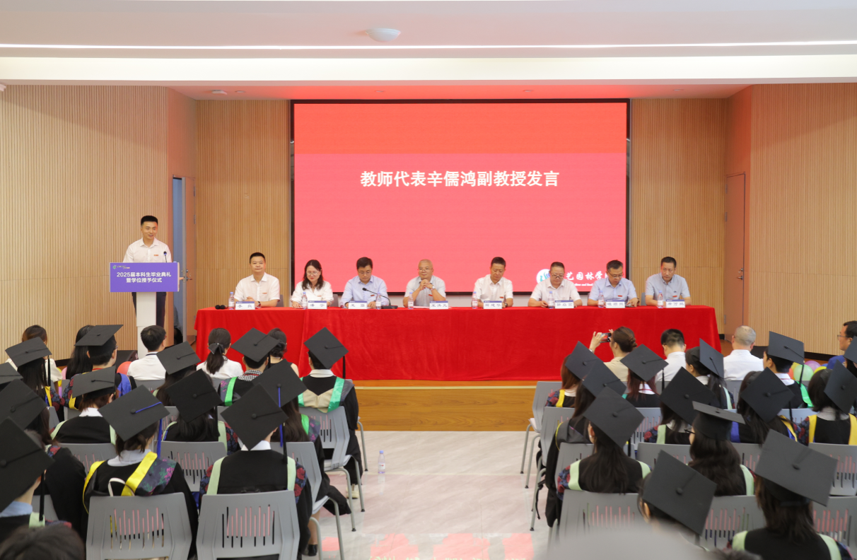 6月26日下午,公司2025届本科生毕业典礼暨学位授予仪式在老员工创新创业中心温情启幕。缙云山下,嘉陵江畔,249名应届全日制普通本科生毕业奔赴人生新征程。集团党委常委、副董事长白显良,全体院领导,全体院学术委员会成员,各系负责人,教师代表,全体辅导员,班主任代表,本科毕业生代表及家长代表齐聚一堂,共同见证美好时刻。活动由公司党委副书记、纪委书记王强主持。