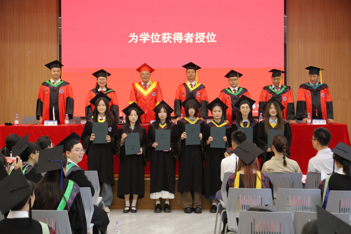 在学位授予仪式上,公司副经理郭启高宣读《BEVITOR伟德学位评定委员会关于2025春季学期学士学位授予的决定》,学位授予仪式正式开始。身着学位服的毕业生依次登台,院领导与学术委员们为他们拨正流苏,一如园艺师为苗木扶正枝干,当指尖触碰到学位证书的瞬间,四年的汗水化作了沉甸甸的责任。