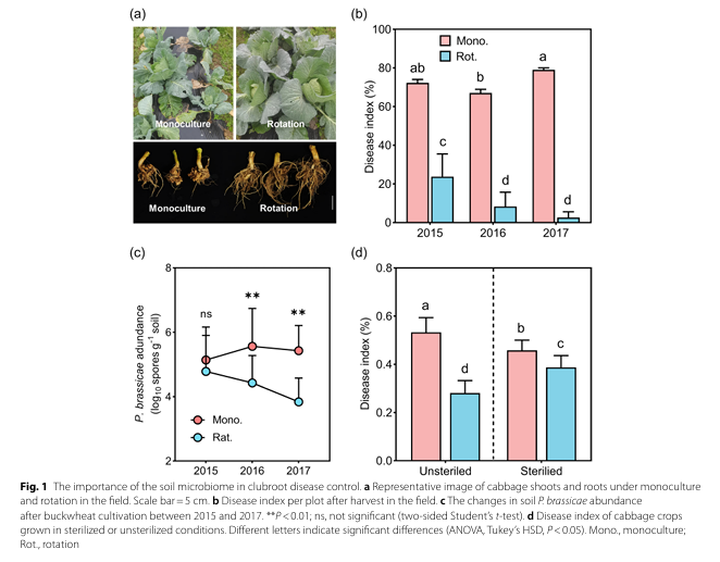 (1)荞麦轮作显著抑制甘蓝根肿病:通过为期三年的田间试验发现,荞麦–甘蓝轮作体系能将根肿病发病率降低67%–97%,且该效果不受病原载量的影响。当对轮作土壤进行高温灭菌处理后,抑病效应随之消失,提示土壤微生物群落是核心驱动因子。