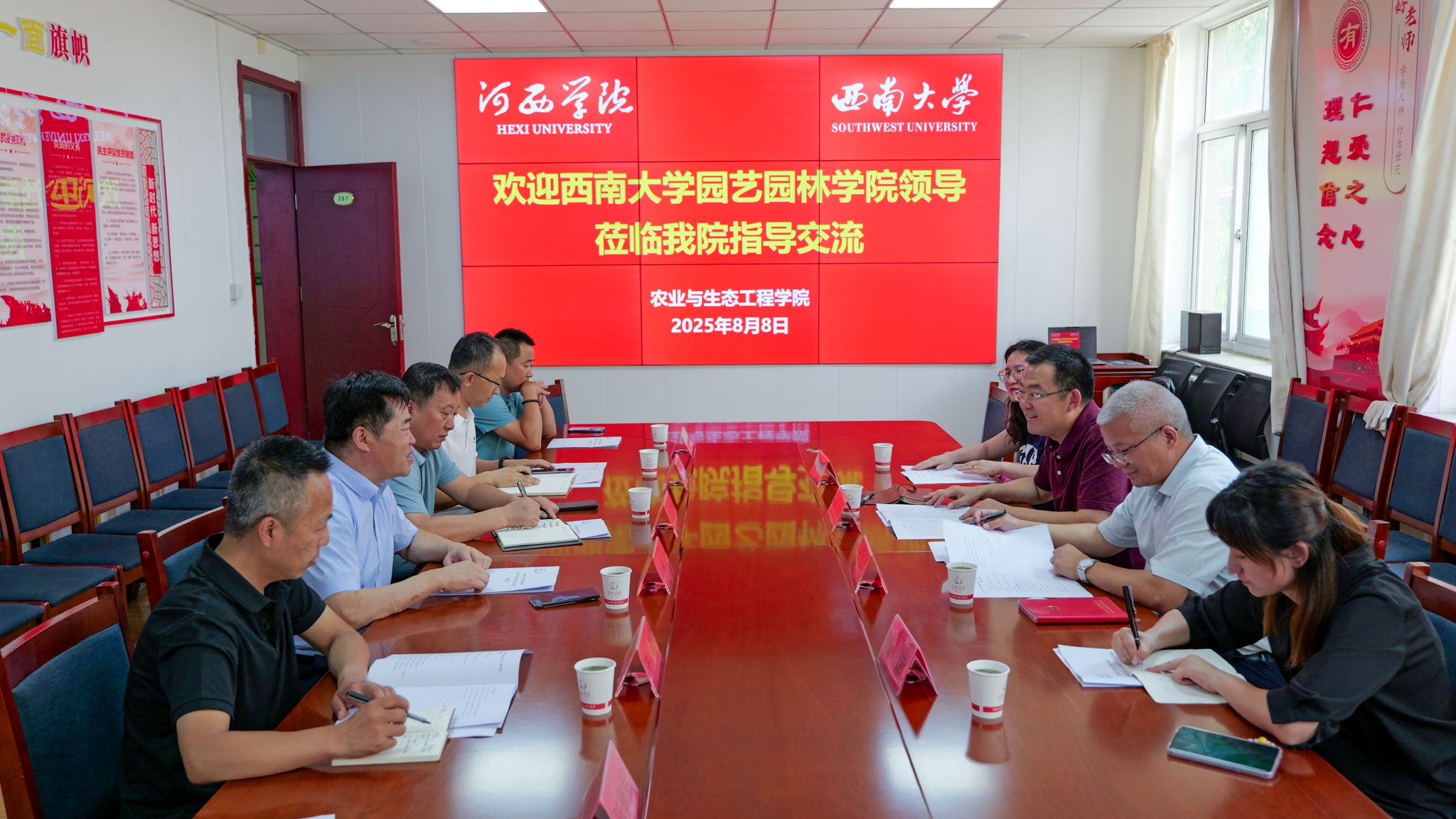 在河西公司,参观了美术公司敦煌文化传承创新中心、集团智慧就业中心、甘肃省应用真菌工程实验室和农业与生态工程公司校内实训基地等。座谈会上,双方围绕人才培养、高层次人才引进、教学科研团队建设、学科专业发展等方面开展交流与探讨。双方表示,将珍惜教育部师范教育协同提质计划政策机遇,进一步拓展园艺学科教学、科研领域的深度合作,积极推进学科专业转型升级,探索创新人才培养新模式,实现优势互补、协同发展。