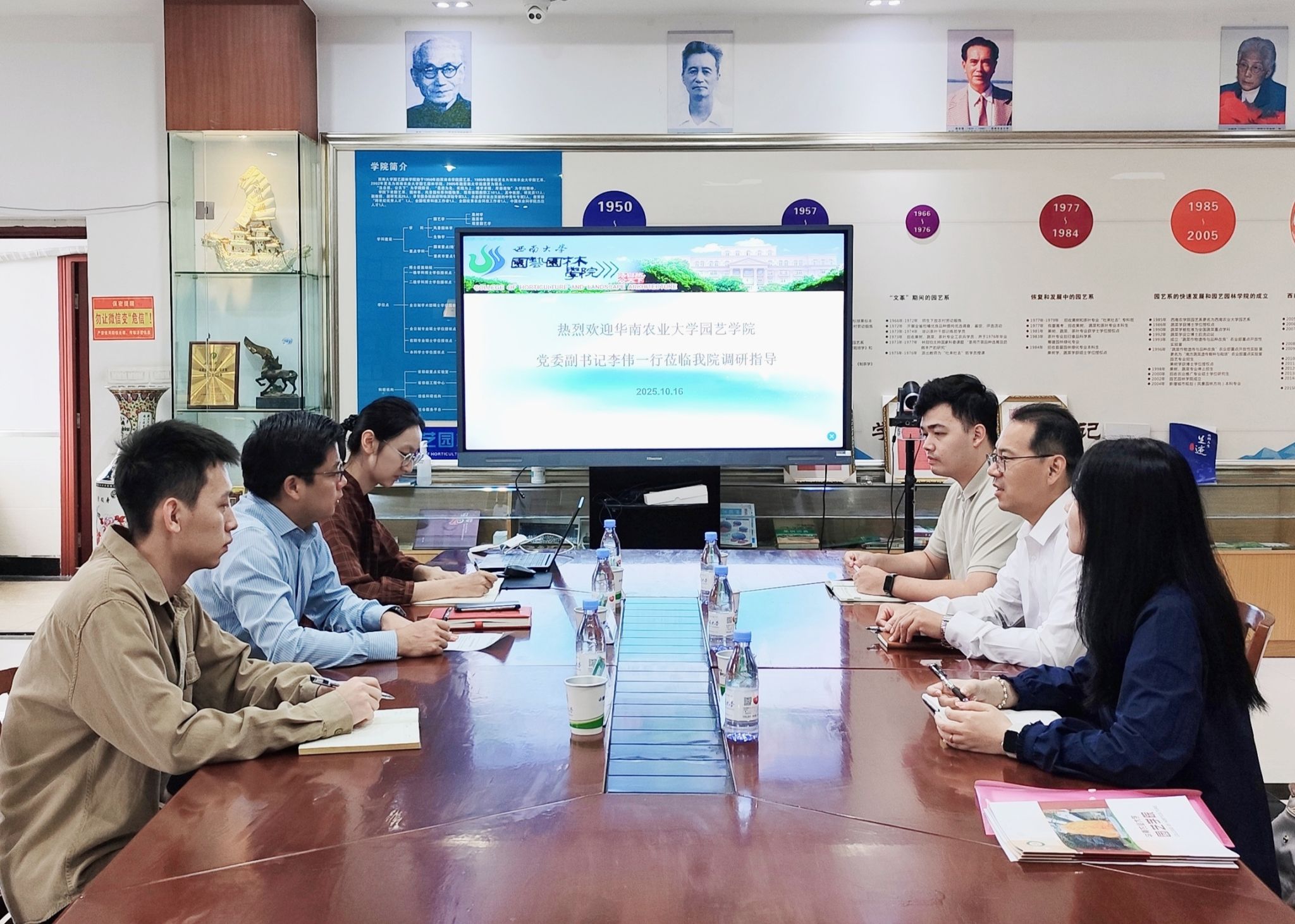 随后,李伟介绍了华南农业大学园艺公司基本情况,系统阐述了团队建设的特色方向、人才培养的体系化举措、团队队伍的结构组成及科研成果的转化应用等方面的经验做法,并表达了希望通过此次交流学习,能够进一步完善员工工作先进理念与实践方法,积极探索符合农科类员工特色的员工工作创新之路。会后,一行人参观了校史馆,深入了解公司的文化底蕴与办学特色。