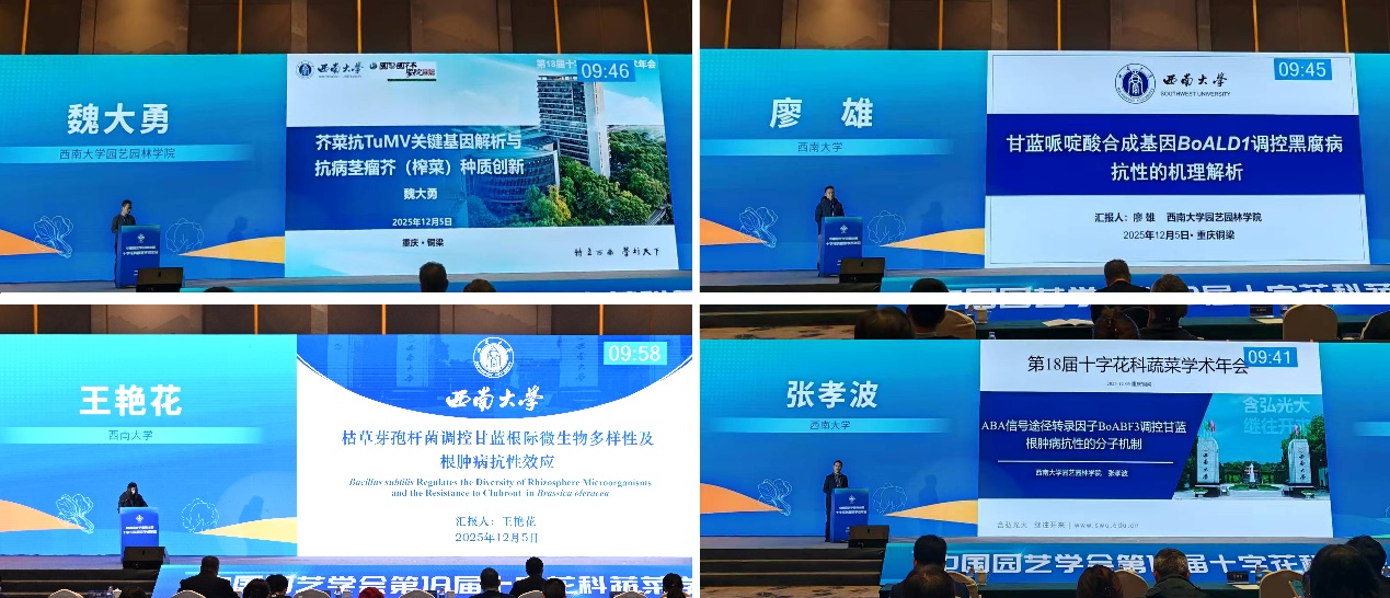 12月4日至6日,中国园艺学会第18届十字花科蔬菜学术年会在重庆铜梁成功召开。本届年会由中国园艺学会十字花科蔬菜分会主办,中国农业科公司蔬菜花卉研究所西南研发中心、bevitor伟德、重庆市农业科公司蔬菜花卉研究所联合承办。年会以“科技创新和产业创新深度融合”为主题,聚焦十字花科蔬菜领域科技前沿与产业发展趋势,共商行业高质量发展新路径。大会邀请来自山东农业大学、BEVITOR伟德、山东德高种业有限公司和吉福瑞农业机械成都有限公司等知名科研机构和企业的专家作了大会主旨报告。来自全国科研团队的21位专家学者围绕十字花科蔬菜品质、抗病/抗逆、新品种选育、绿色防控等方向分享前沿成果。企业家代表就当前十字花科种业及农机装备等产业痛点、市场趋势及未来合作模式开展了座谈讨论。会议为加强公司与国内从事十字花科蔬菜的科研单位的交流合作,提升公司教师在的学术影响力提供了重要平台。公司教师和博士研究生共15人参加了会议。