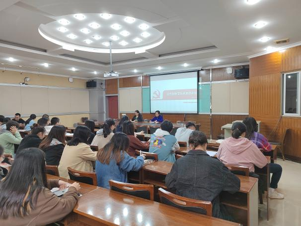 随后,各党支部书记聚焦主题党日活动和党员发展工作,围绕如何提质增效党支部工作开展讨论。教工党支部书记关心老师分享了支部在吸收青年教师积极向党组织靠拢的情况,不断在老师中营造“干大事,跟党走”的良好氛围;研究生党支部书记张靖悦分享了支部在主题党日活动采用党课轮讲制,党小组集体备课、支委会总体把关的特色做法,并在每月主题活动中通报支部上月工作情况和本月工作安排,加强支部党员的参与度;本科生党支部书记朱干老师强调了通过党史学习进一步提升员工党员的理论修养,加强专业与党建工作的融合,促进支部间工作交流。