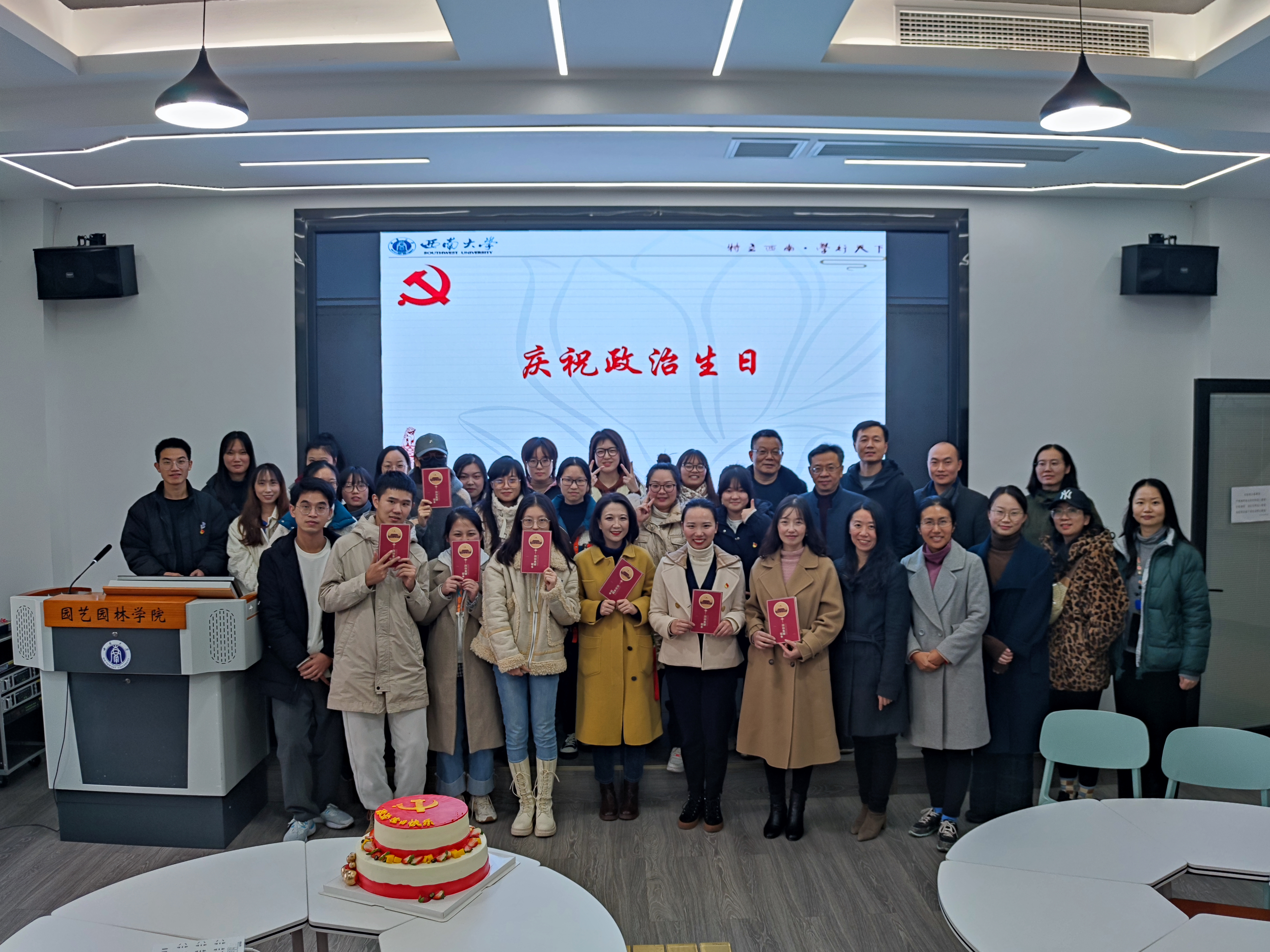 会上,支部党员同志们重温入党誓词,支部为党员庆祝政治生日。教工支部党员重读入党志愿书,研究生支部党员结合自身经历分享了入党初心。
