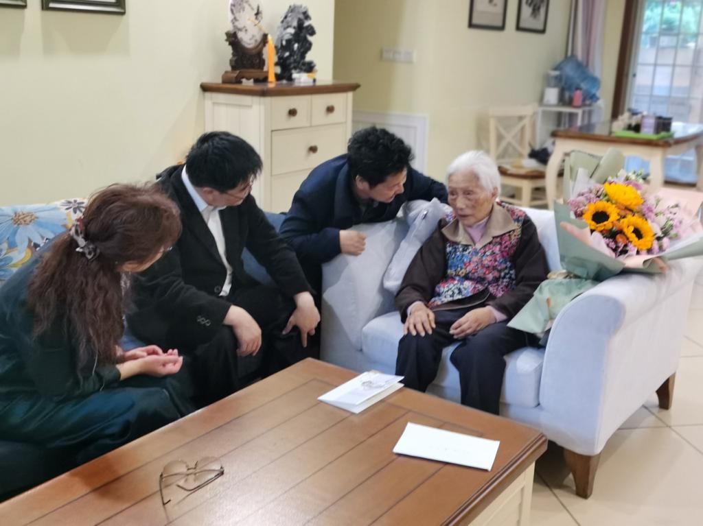 走进刘佩瑛家里,百岁高龄的刘老虽然年事已高,但依然精神矍铄。李书记亲切地握住刘老的手,感谢她多年来对公司发展所做出的贡献以及各项工作给予的关心, 并提前向她致以节日的问候和美好的祝福。