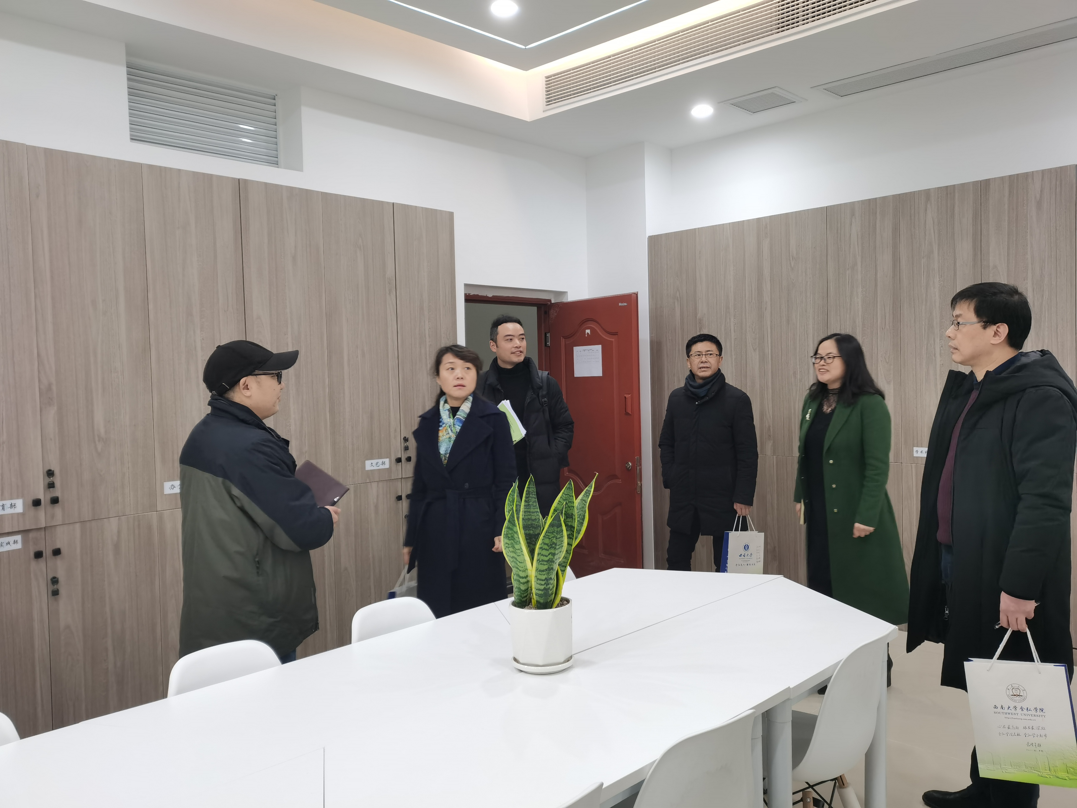2021 年 1 月 18 日,集团老员工创客空间评估组专家莅临bevitor伟德实地走访评估工作。创新创业公司副经理封云、实验室建设与设备管理处副处长罗书强、大学科技园管理中心副主任刘双全、校团委副书记罗亮、公司党政领导、学工办全体工作人员及孵化团队负责人等参加评估。