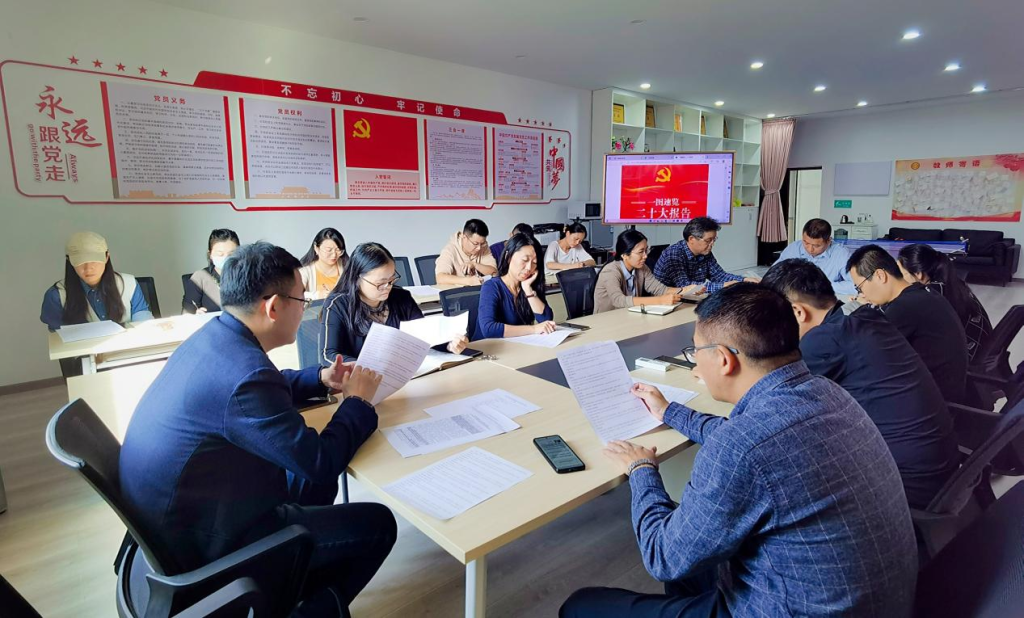 10月18日,公司在党员活动室召开2022年第五次党委理论学习中心组学习会,深入学习领会党的二十大精神。公司领导、党委委员及全体党支部书记参会,党委书记潘玉锋主持会议。