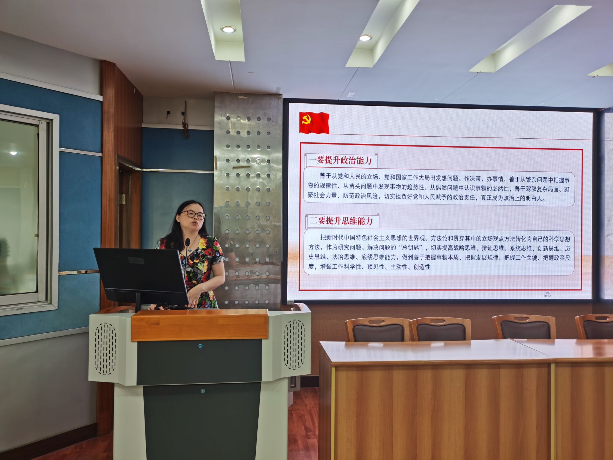 首先,李小红领学学习贯彻习近平总书记重要讲话精神,深刻领悟“以学增智”重要要求,强调“以学增智”要“提升政治能力、思维能力和实践能力”的明确要求,为推动学习贯彻习近平新时代中国特色社会主义思想主题教育走深走实提供了思想和行动指南。随后,学习近平总书记在二十届中央政治局第五次集体学习上的重要讲话精神。她强调要以习近平总书记重要讲话为指引,加强教师队伍建设,积极投身教育强国实践,抓住建设教育强国核心课题,确保党的事业和社会主义现代化强国建设而后继有人。