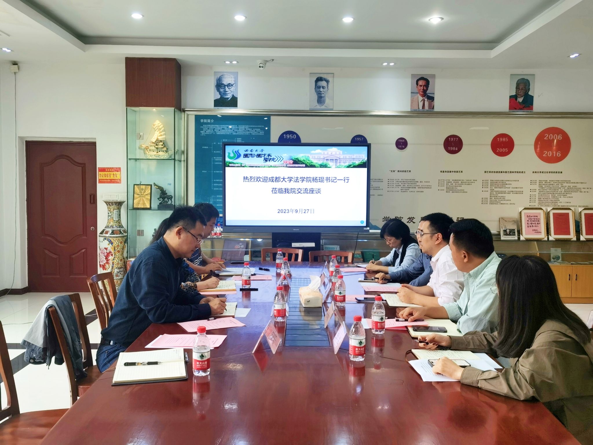 9月27日上午,成都大学法公司党委书记杨琨一行5人来公司考察交流。公司党委书记潘玉锋,党委副书记李小红,组织员张靖悦,团委书记、学工办主任谭泽轩参加了交流会,会议由潘玉锋主持。