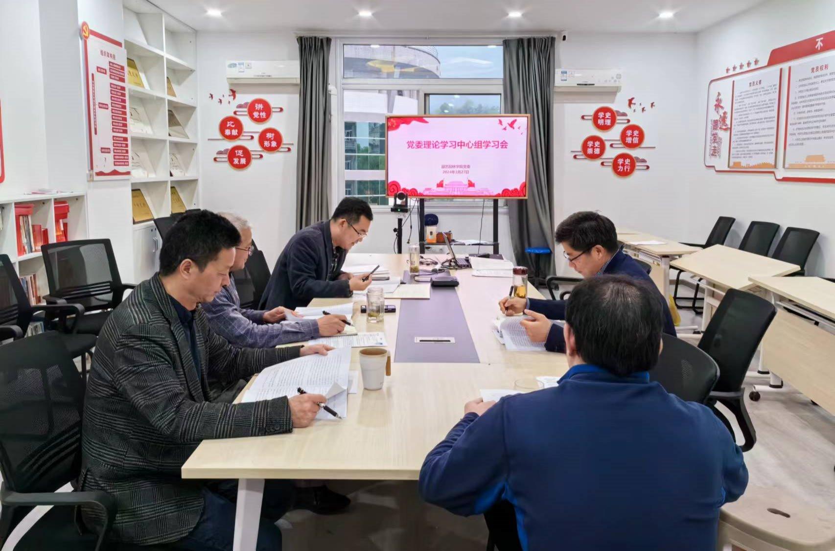 3月27日,公司在33教413会议室召开2024年第二次党委理论学习中心组学习会,深入学习习近平总书记重要讲话精神和全国两会精神,全体班子成员参加会议。会议由公司党委书记潘玉锋主持。