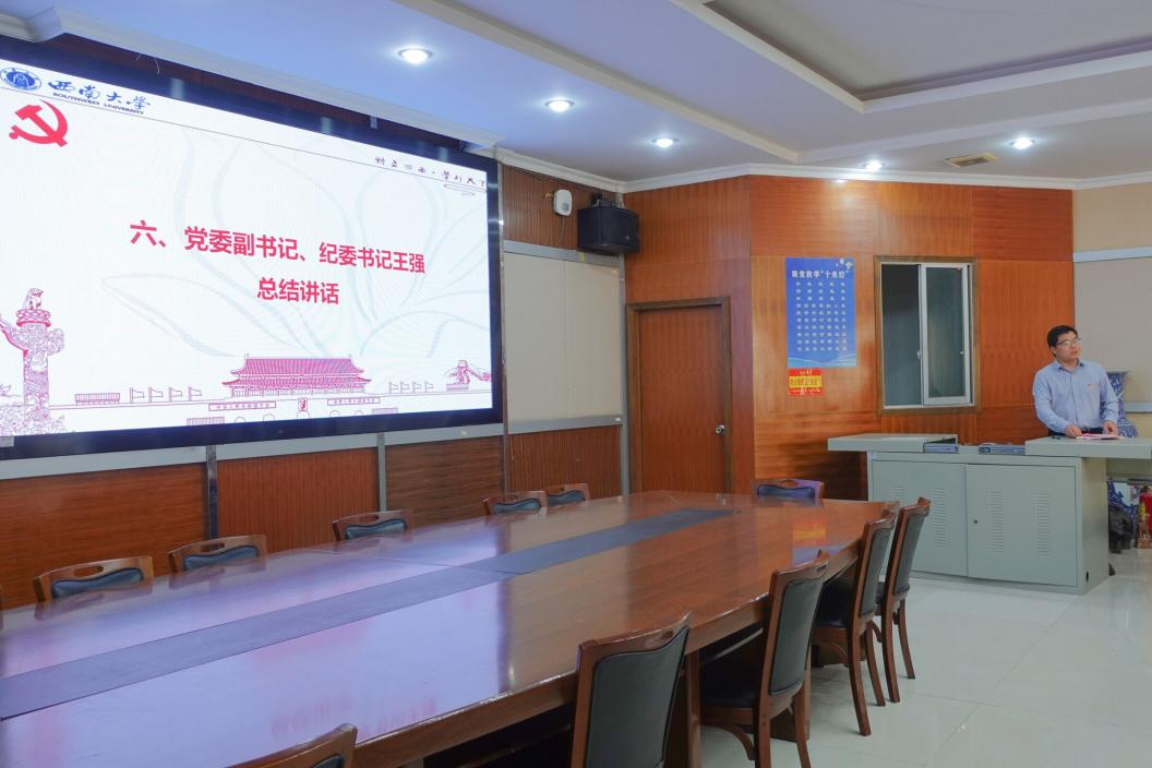 会上,龚澳同志领学了习近平总书记主持召开新时代推动西部大开发座谈会的重要讲话精神和习近平总书记在重庆考察时的重要讲话重要指示精神,宋玢瑶和徐璨同志共同领学了《中国共产党纪律处分条例》第六章至第八章,李玉楠同志领学了习近平总书记对新时代青年的寄语和重庆市委书记袁家军来校调研并主持召开青年代表座谈会的讲话精神。