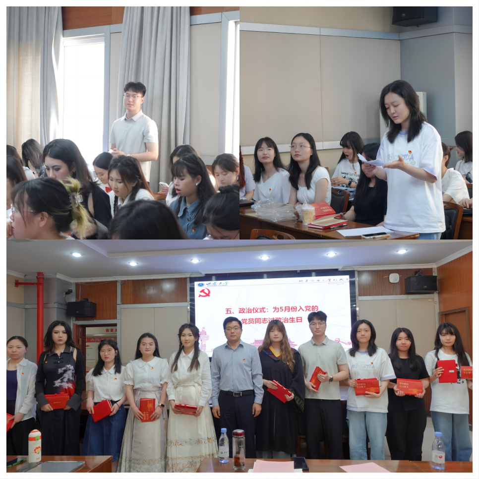 党支部为五月份入党的唐沛、谢美如等11位党员同志庆祝了政治生日,李世鑫和李俊杰同志分享了自己的政治生日感言。王强为大家赠送了政治贺卡和礼物。