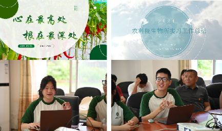 随后,实习生代表蒋林玲同学以“心在最高处 根在最深处”为主题,从实习概况、工作内容、学习成果和心得体会四个方面全面而生动地汇报了此次专业实习。她深刻认识到农业工作者们将双脚扎进泥土,将论文写在田地上,将蔬菜新品种、新技术带到田间地头,促进农民增产增收,为蔬菜产业高质量发展提供有力支持。她表示将继续深入学习农业专业知识,培养爱农情怀,磨练兴农本领,在乡村振兴的舞台上做出贡献。同时,实习生代表郭权从基本情况、工作完成情况、心得与体、意见和建议四个方面也向大家交流汇报了此次实习情况。