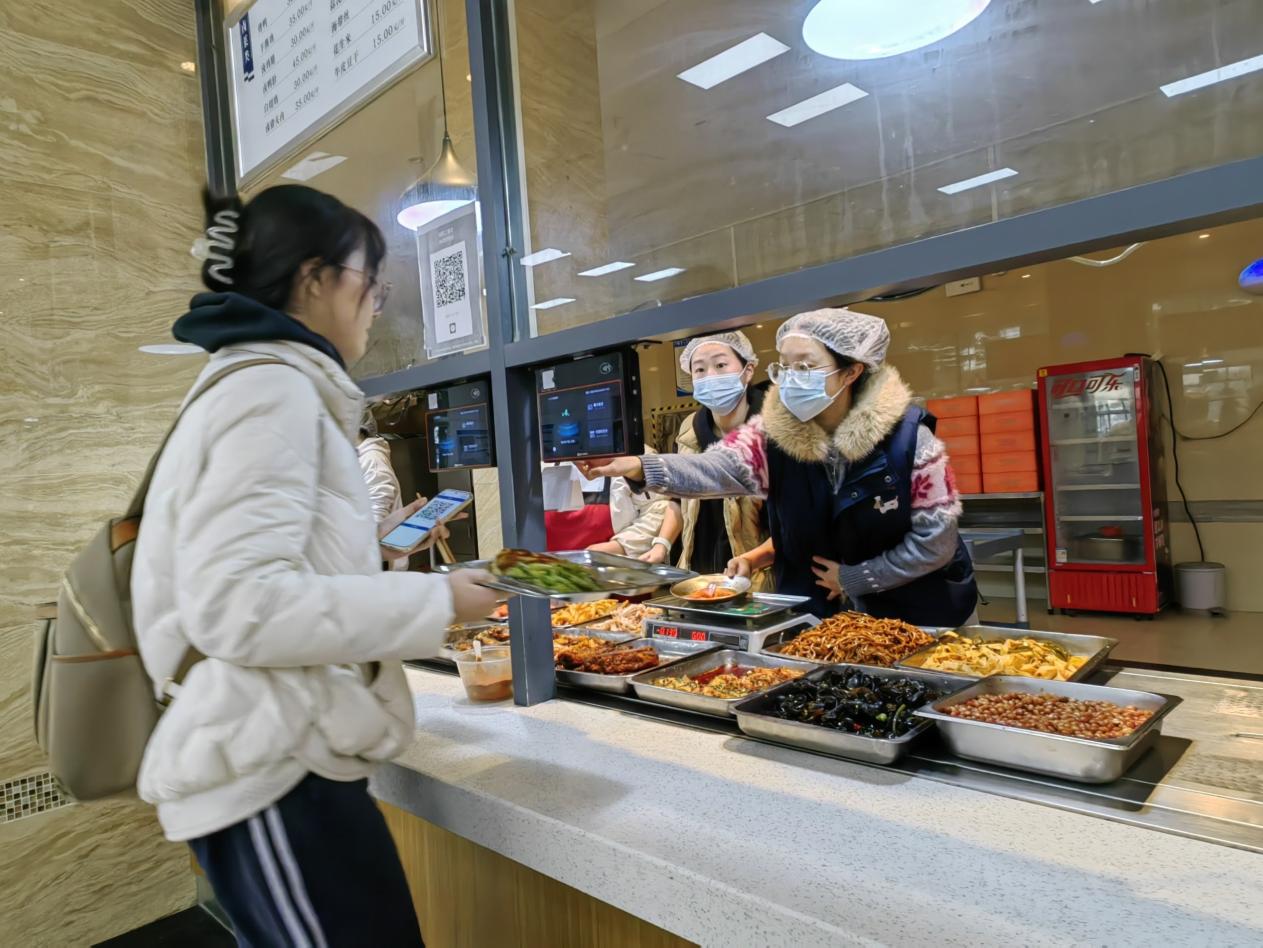 随后,党员分组投入实践服务。在面点区,大家动手参与包子制作,体验每一道工序的用心;在售餐窗口,党员们热情服务、规范操作,高效配合用餐高峰;在就餐区,成员们及时清理餐桌、归整餐具,维护环境整洁。全体党员默契协作、干劲十足,以实际行动缓解食堂工作压力,也为师生营造了更加文明有序的就餐氛围。
