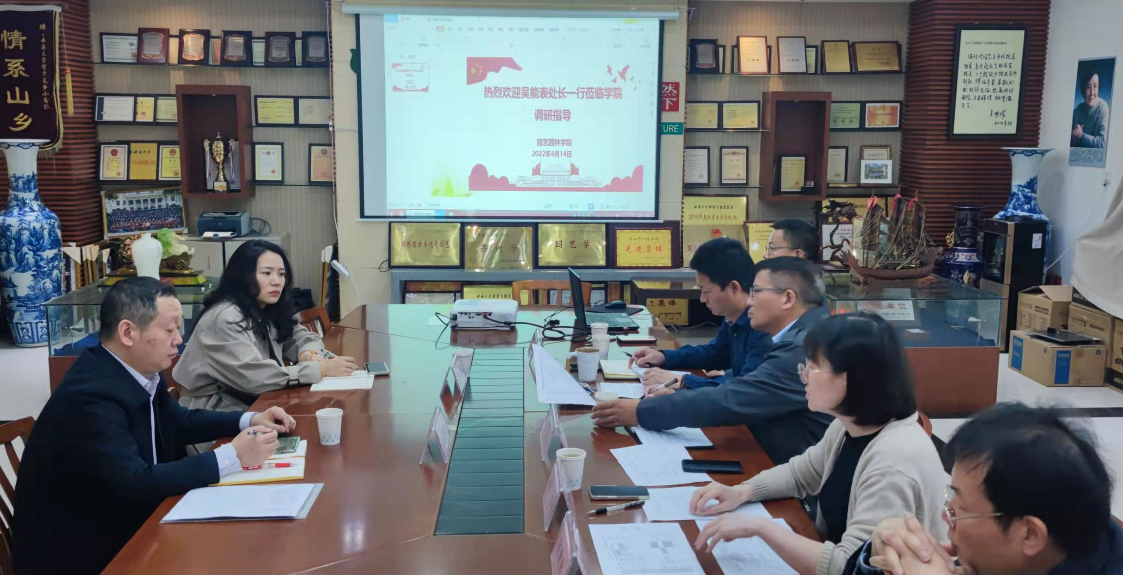 会上,公司经理宋洪元首先代表公司对吴能表处长一行表示热烈欢迎,衷心感谢教务处对公司工作的支持和帮助。随后,相关专业负责人详细介绍了园艺国家一流本科专业、园林国家一流本科专业和风景园林重庆市一流本科专业相关建设情况。周建华副经理对3个专业建设情况做了进一步的说明,阐述了公司推进本科专业建设工作的思路及举措,汇报了面临的一些现实困难和急需解决的问题。