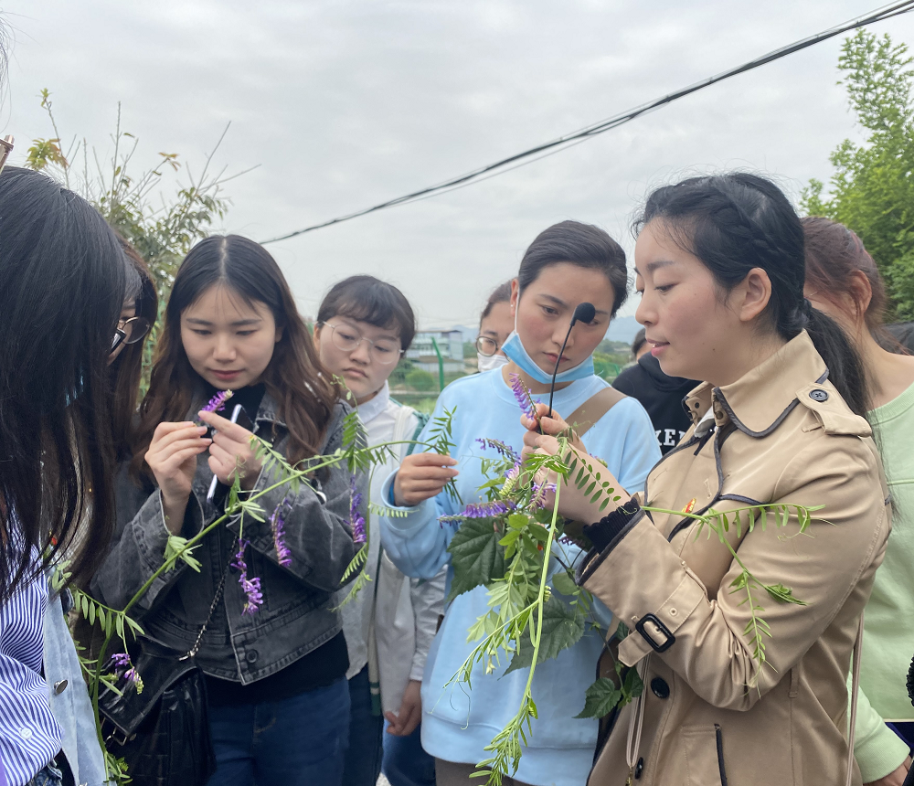 在前往大磨滩湿地公园途中,支部书记李运婷同志为同学们带来了一堂直观生动、别具一格的植物识别课。她选取常见并具代表性的植物为大家讲解种名及其详细特征。“这个是柑橘,其实柑橘是橘、柑、橙、金柑,柚、枳等的总称,是我们BEVITOR伟德柑橘研究所的研究对象,其花芳香,花、叶、果皮均是提取香精的优质原料……这个是广布野豌豆,豆科野豌豆属的植物,偶数羽状复叶,叶轴顶端为变态的叶卷须,总状花序粉紫色,荚果长圆形……这个是窃衣……”。