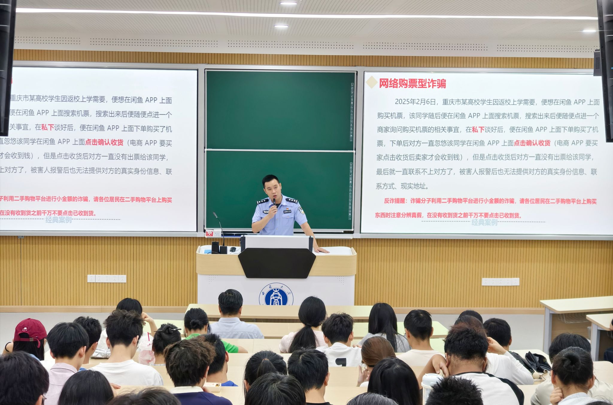 为筑牢防范电信网络诈骗的安全防线,培养理性防范思维,建设平安校园,5月16日,公司邀请天生派出所警长张又之、天生派出所民警刘佳在31教学楼209教室开展防范电信网络诈骗宣讲会。公司党委副书记、纪委书记王强,2024级本科生辅导员许淑雅及公司师生代表共计150余人参会。