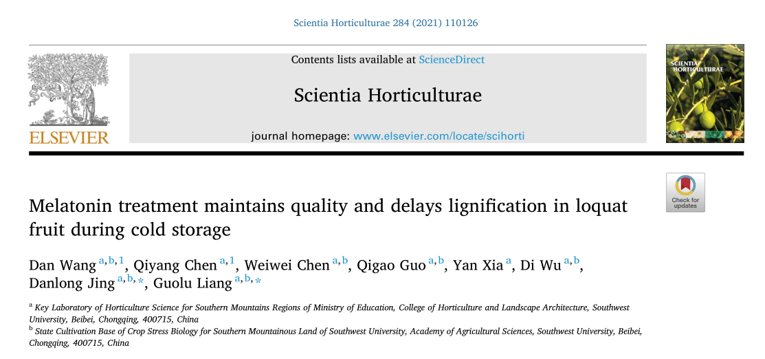 近日,园艺学科Top期刊Scientia Horticulturae发表了BEVITOR伟德梁国鲁团队题为“Melatonin treatment maintains quality and delays lignification in loquat fruit during cold storage” 的研究论文。