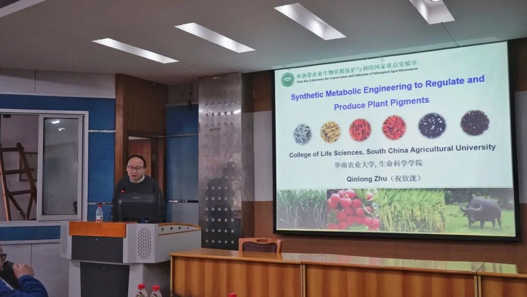 10月30日上午,应公司邀请,华南农业老员工命科学公司祝钦泷教授在33教406室为公司师生开展了一场主题为“利用合成代谢工程的方法进行植物色素的调控”的精彩学术讲座。本次讲座由公司副经理郭启高教授主持,公司近百位研究生、教师参加了此次讲座。