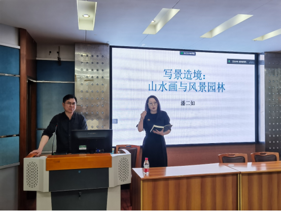 5月15日下午,风景园林学术讲座“写景造境:山水画与风景园林”于33教406隆重举行。本次讲座邀请到画家、书法家,香港中文大学(深圳)驻校艺术家潘二如老师作为主讲人,左赛男老师作为对谈嘉宾。讲座由周建华副经理主持,风景园林系副主任刘家琳及相关师生100余人参加讲座。